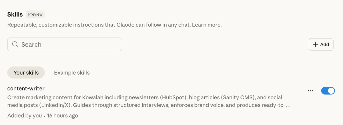 If you can describe how you think through a problem, you can build a skill. It's documenting your process, not writing software.